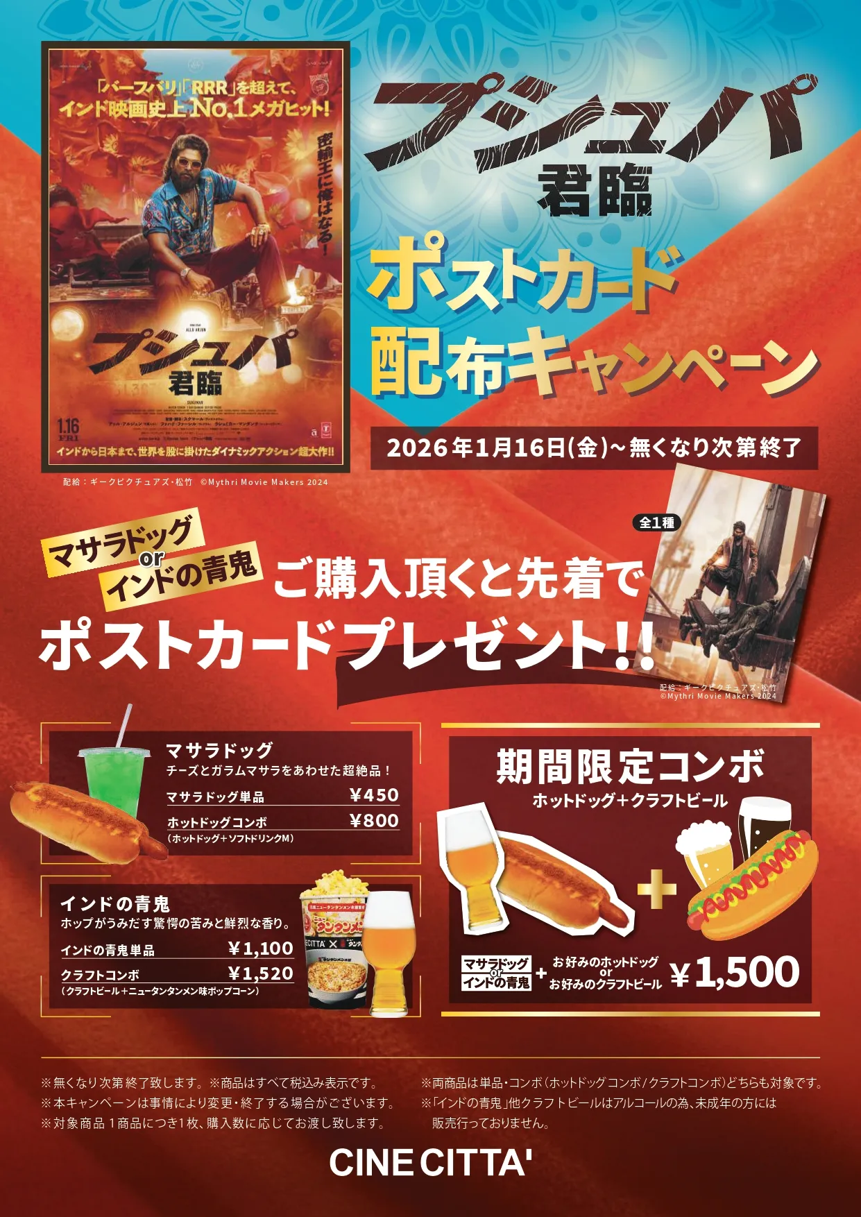 1/16(金)~『プシュパ 君臨』公開記念・ポストカード配布キャンペーン実施決定!